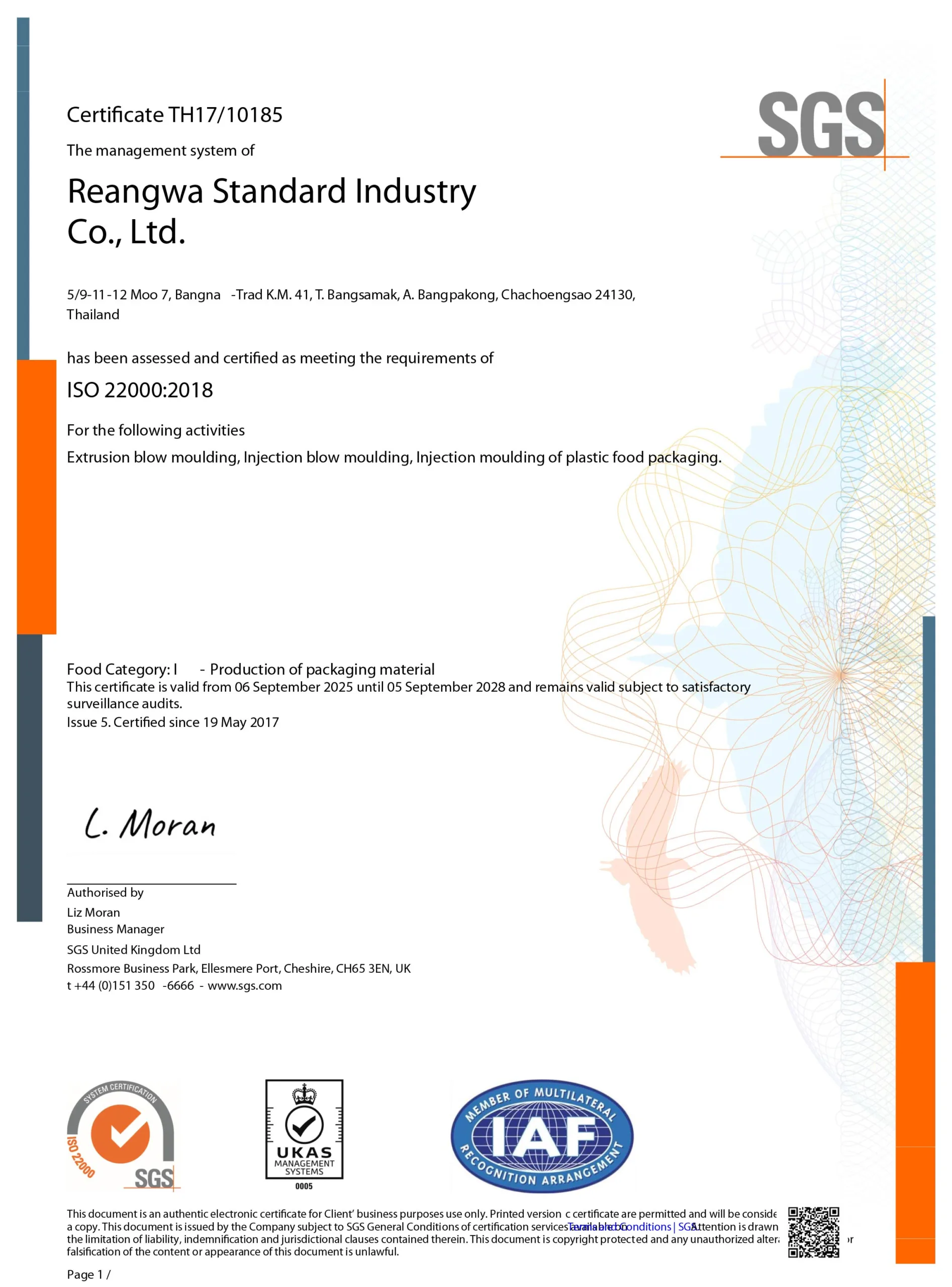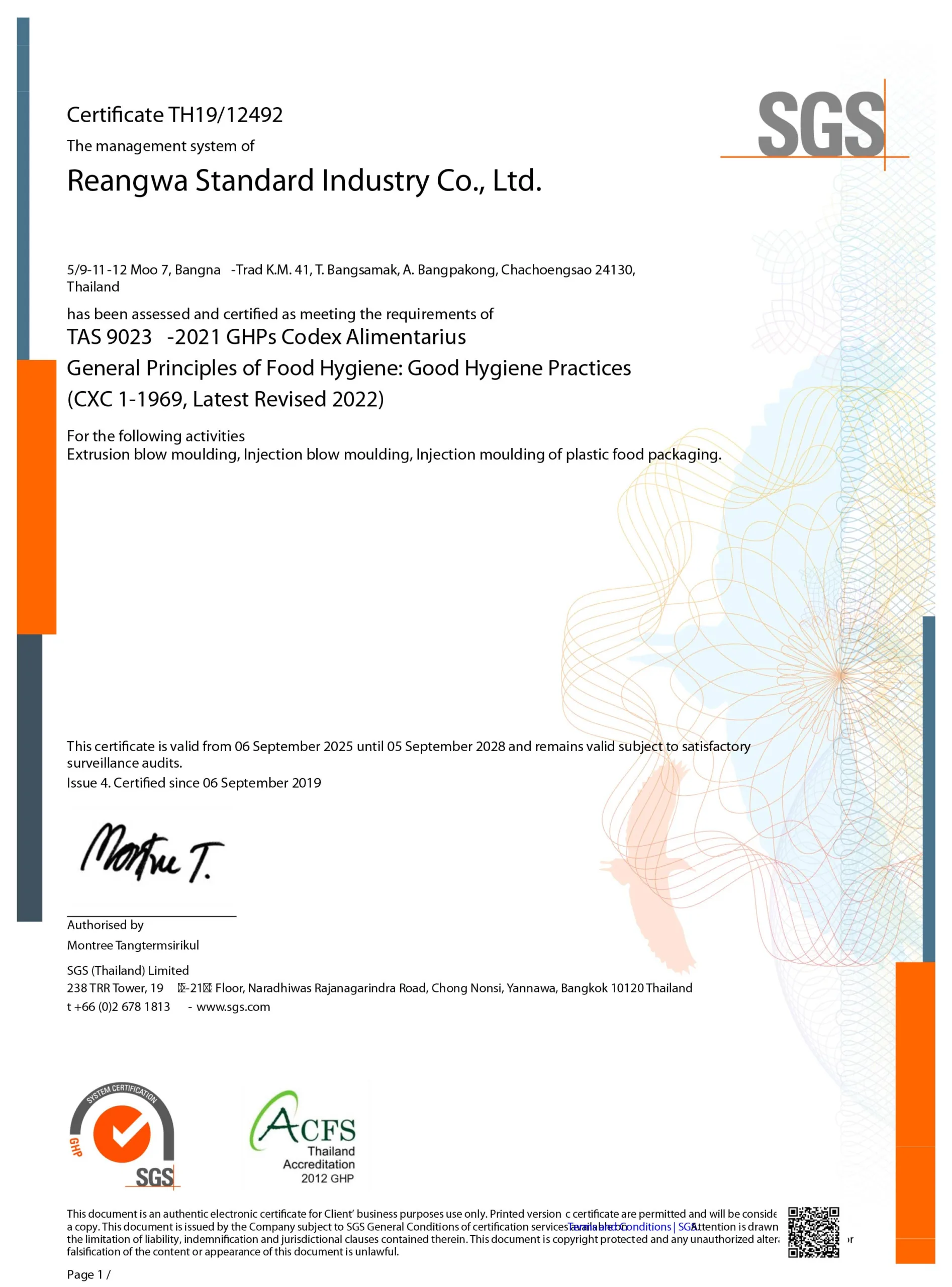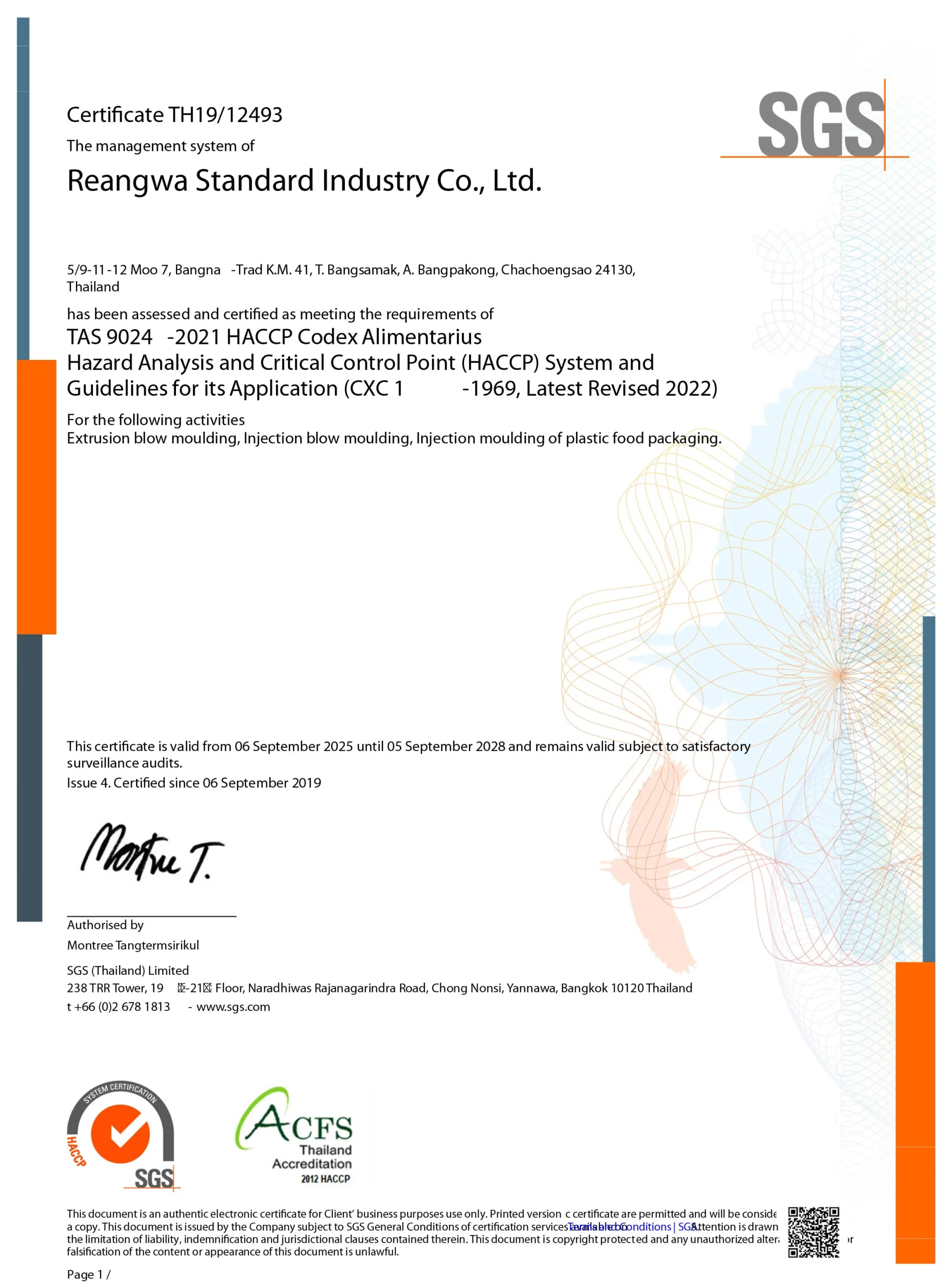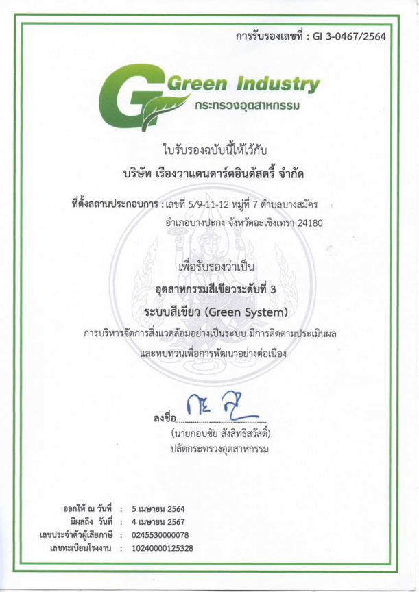 Reangwa Standard Industry Co.,Ltd. commits to achieve the status of a World Class Manufacturer of Plastic Products.