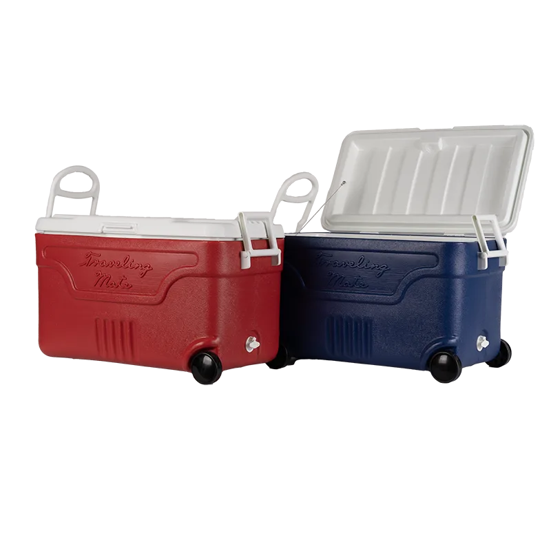 กระติกน้ำแข็งฉีดโฟม เหลี่ยม มีล้อ พร้อมฝา มือจับ
