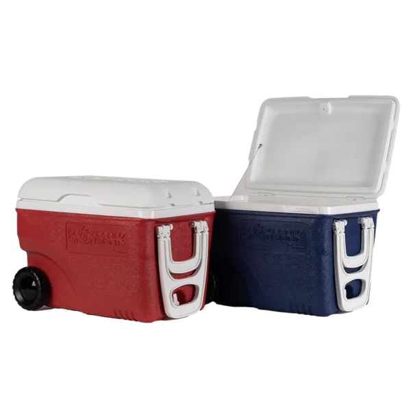 กระติกน้ำแข็งฉีดโฟม เหลี่ยม มีล้อ พร้อมฝา มือจับ
