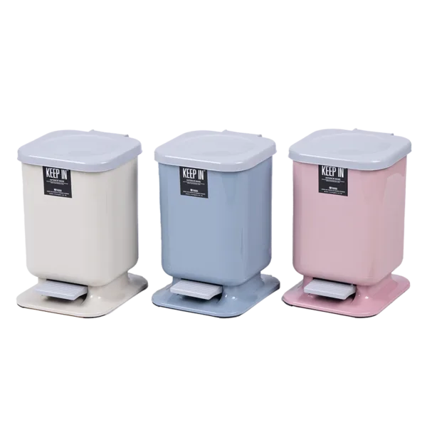 ผลิตจากพลาสติกคุณภาพ ,ใช้งานสะดวก ทำความสะอาดง่าย, แข็งแรง ทนทาน, มีขาเหยียบและ พร้อมฝาปิด กันหนู กันแมลง, มีตัวถังด้านในเพื่อเทขยะได้